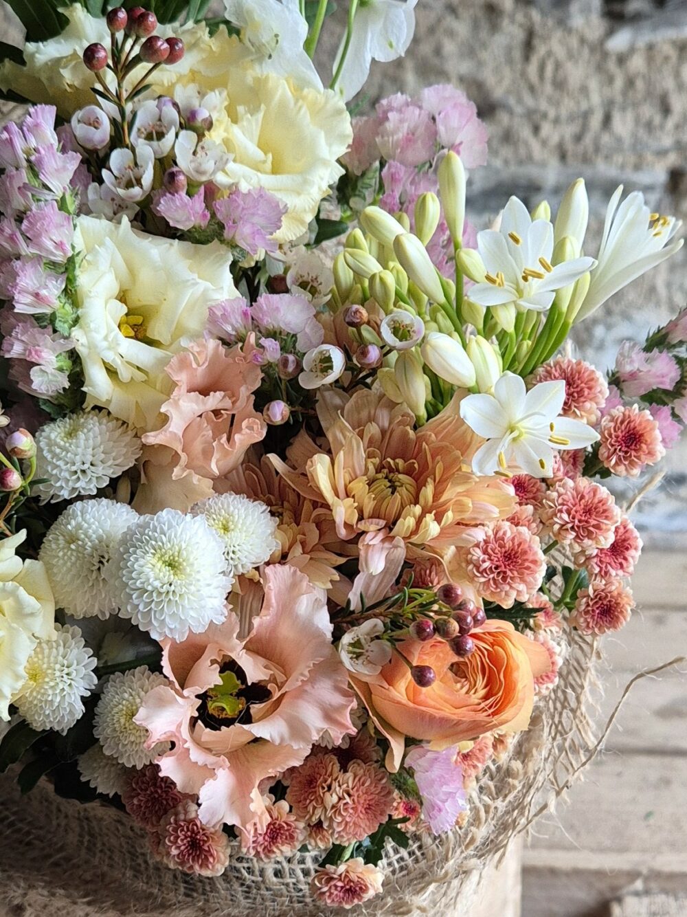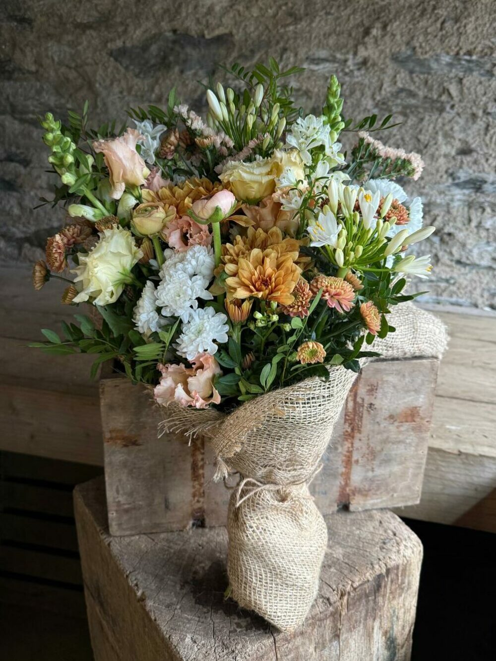 This bouquet uses imported flowers. In order for us to offer bouquets all year round we import flowers from places where they grow plentifully throughout winter. We use our own homegrown flowers as soon as the season allows.