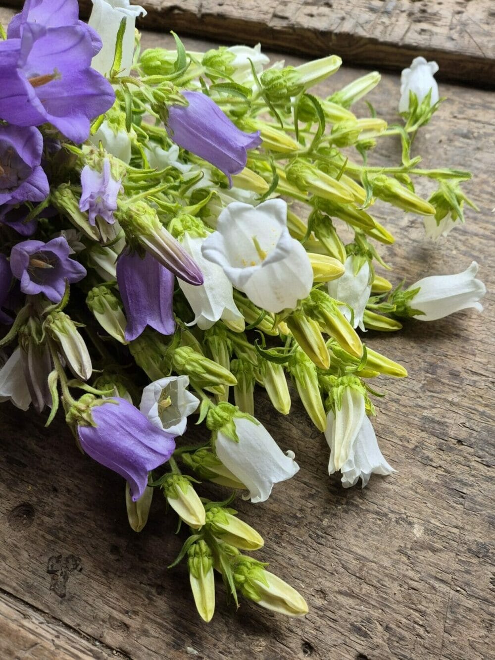 The first buckets of campanula have started to come out the field and they are straight up out of a fairytale. These enchanting lavender bells seem almost cartoonish in their appearance, like they belong in a woodland glade in a distant Disney forest. But no, we grew them and you can have them on your kitchen table in a flash. They have an incredible vase life, with the lower bells opening after the higher bells have done their thing.