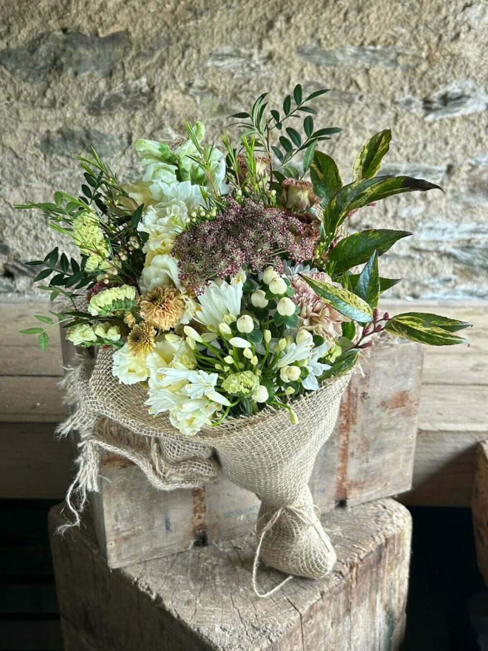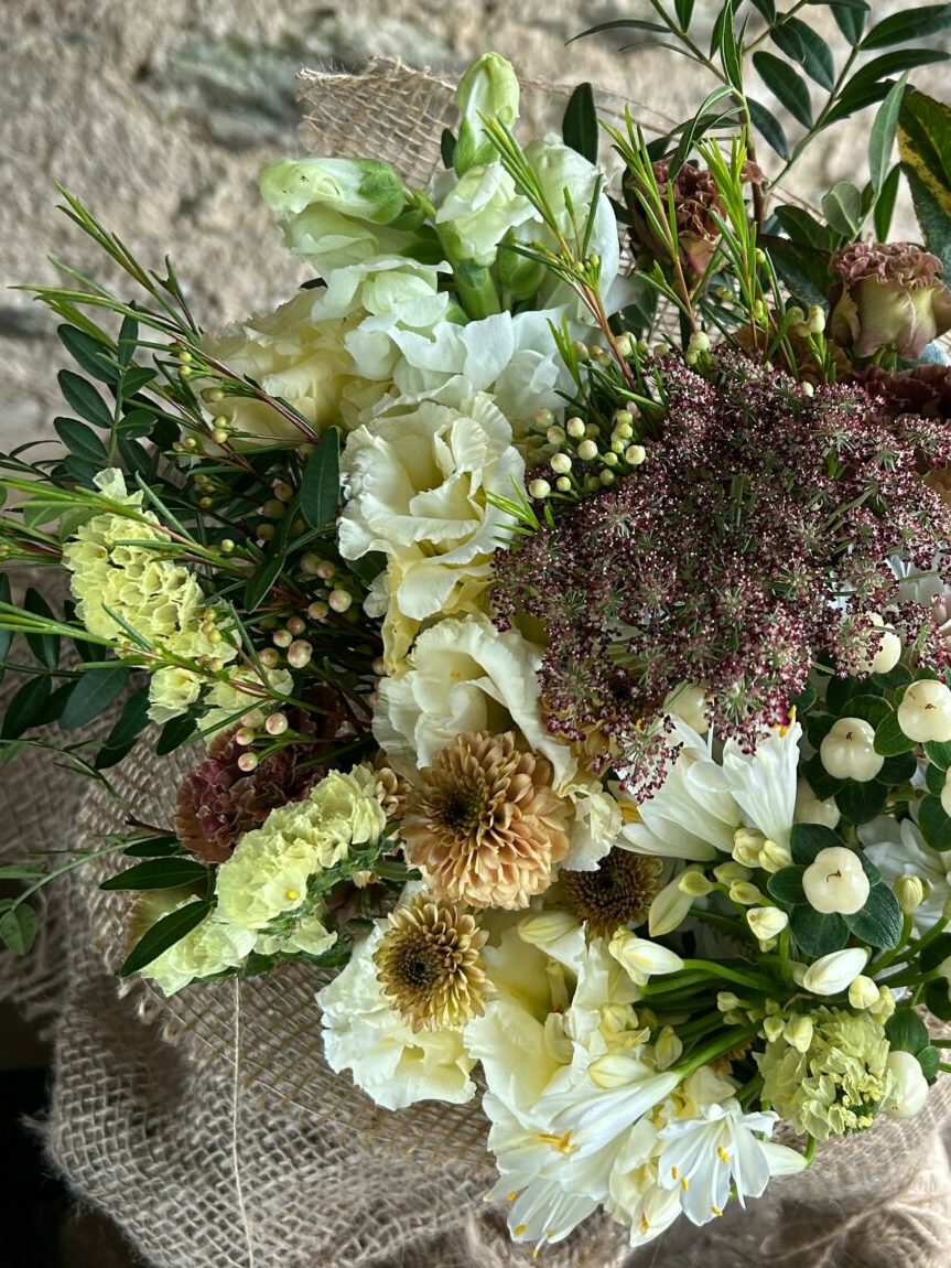 This bouquet uses imported flowers. In order for us to offer bouquets all year round we import flowers from places where they grow plentifully throughout winter. We use our own homegrown flowers as soon as the season allows.