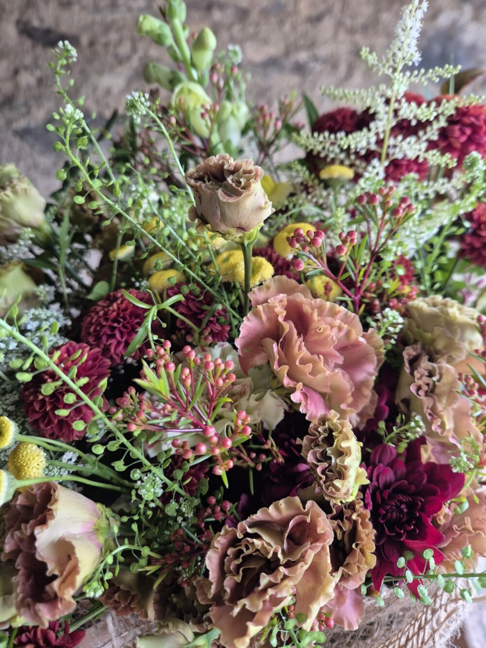 This bouquet uses imported flowers. In order for us to offer bouquets all year round we import flowers from places where they grow plentifully throughout winter. We use our own homegrown flowers as soon as the season allows.