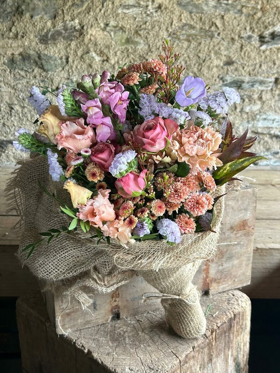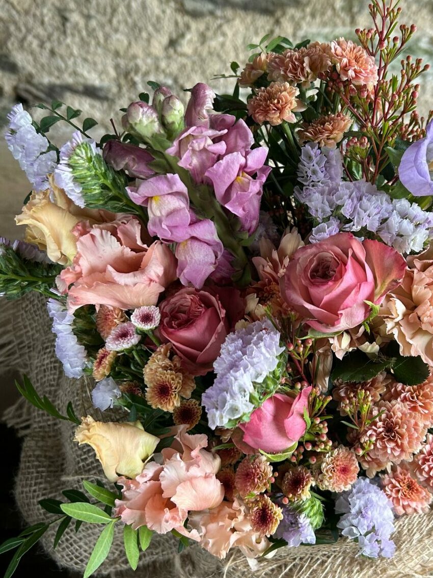 This bouquet uses imported flowers. In order for us to offer bouquets all year round we import flowers from places where they grow plentifully throughout winter. We use our own homegrown flowers as soon as the season allows.
