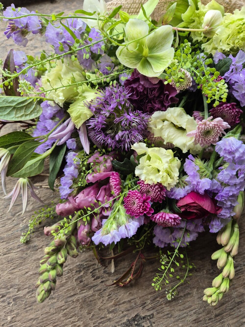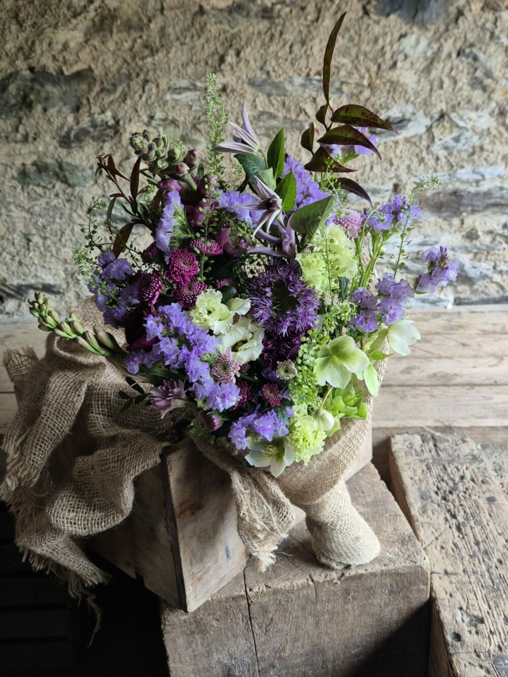 This bouquet uses imported flowers. In order for us to offer bouquets all year round we import flowers from places where they grow plentifully throughout winter. We use our own homegrown flowers as soon as the season allows.
